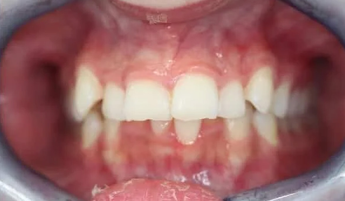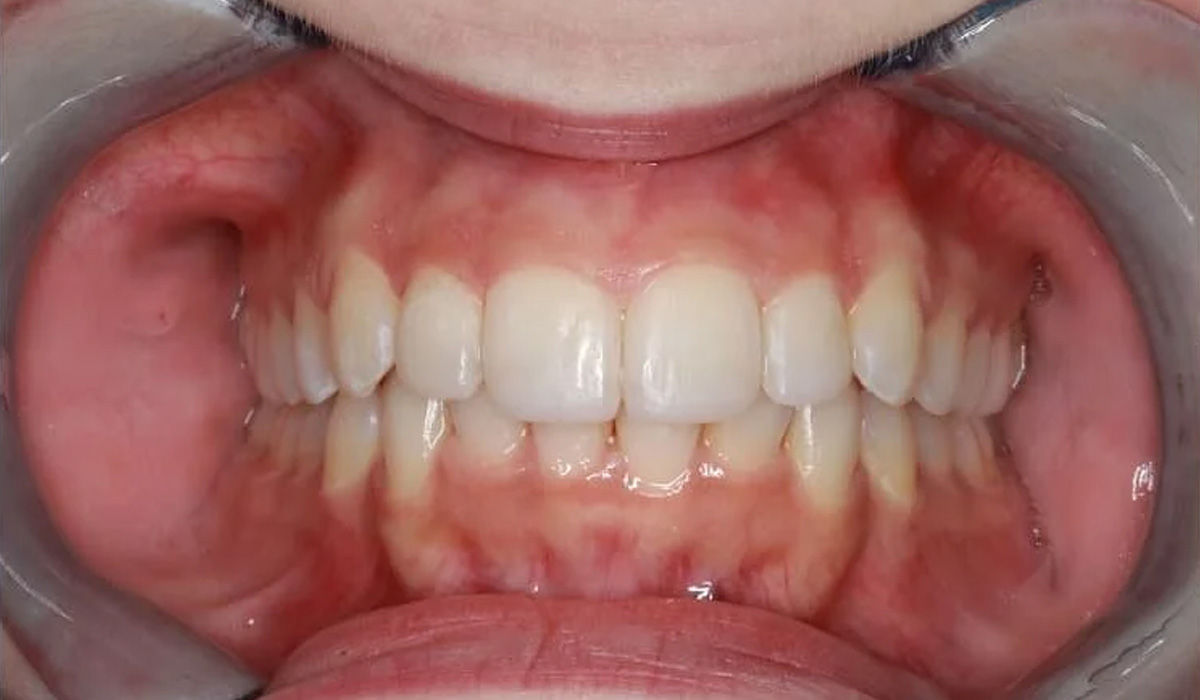 Lindalle tehtiin 11 kuukautta kestänyt oikomishoito Invisalign-oikomiskalvoilla. Hoidon jälkeen hampaiden kärjet viimeisteltiin esteettisillä muovitäytteillä.
